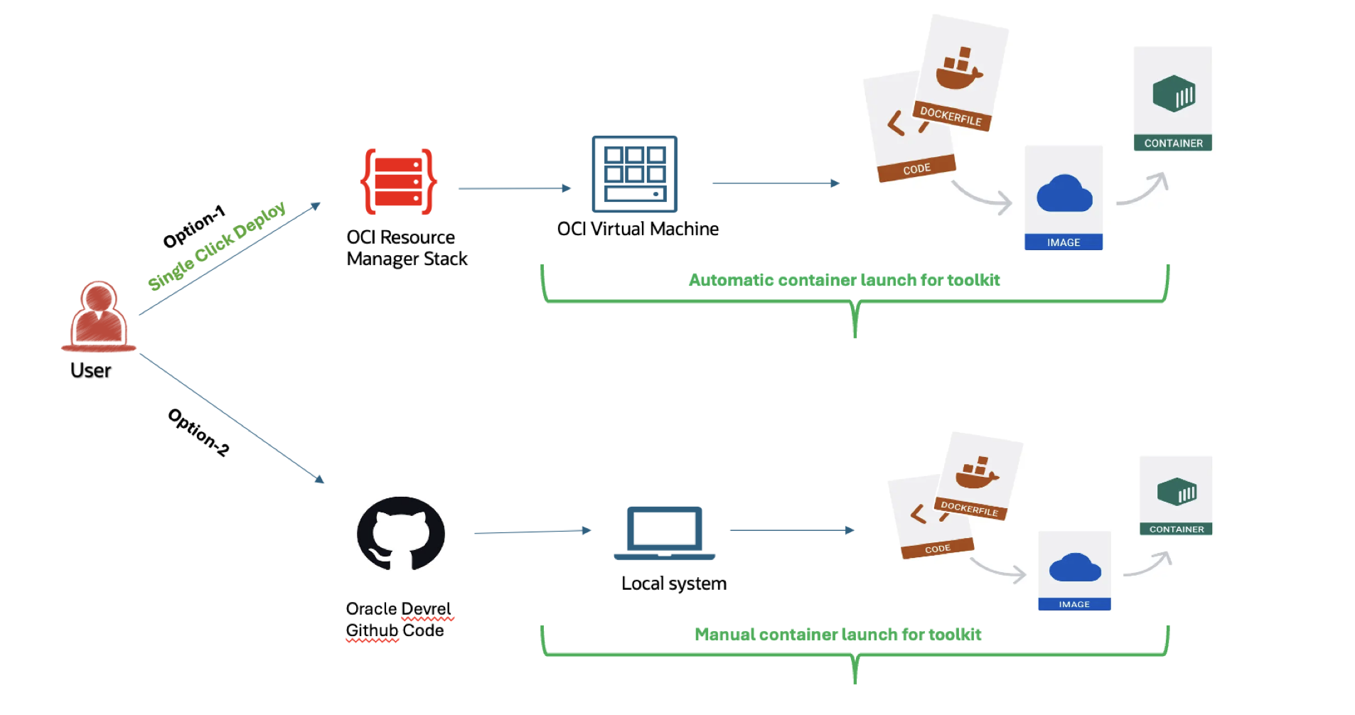 Note: Follow this method to use the toolkit for OCI deployments. For Azure, it is recommended to use the Manual Container Launch method.